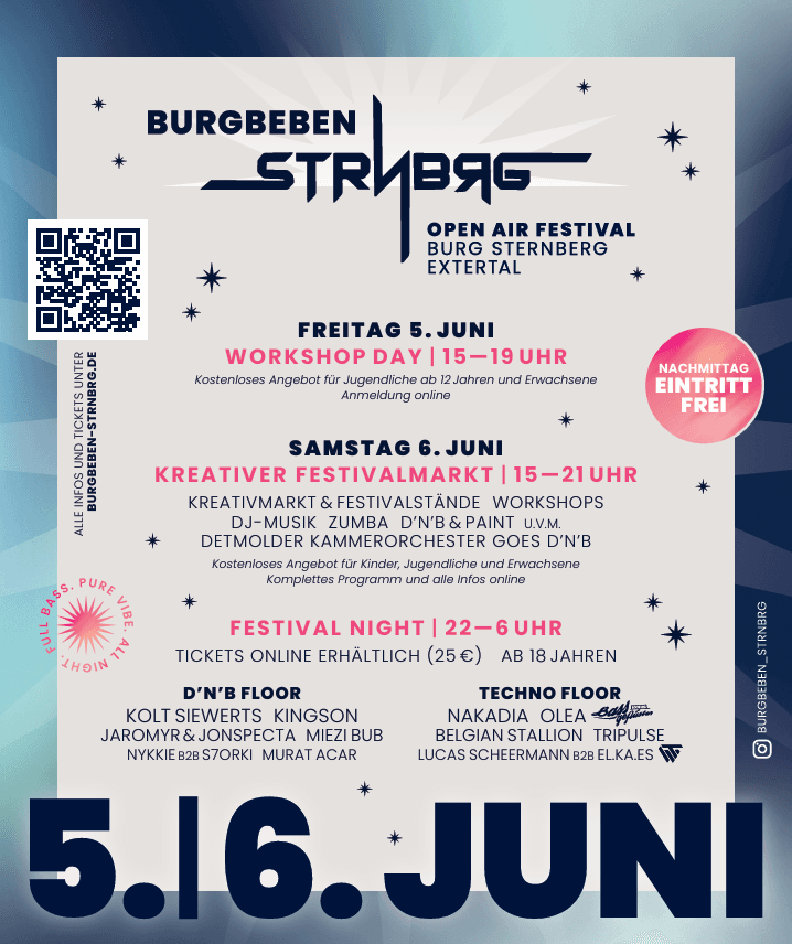 Das BURGBEBEN STRNBRG ist ein Jugendsubkulturfestival, das in 2022 seinen Auftakt feierte und in diesem Jahr vom 5. bis 7. Juni in die fünfte Runde geht. Beginn ist am Freitag, den 05. Juni mit einem Workshop-Tag, am Samstag, den 06. Juni folgt ein Open Air Nachmittag mit: